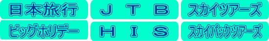 他の旅行会社等の旅行商品を販売いたします。主な取扱旅行会社は下記のとおりです。